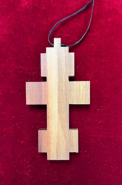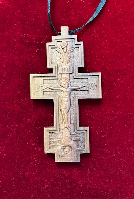 Machine carved wooden pectoral cross on a pear wood.