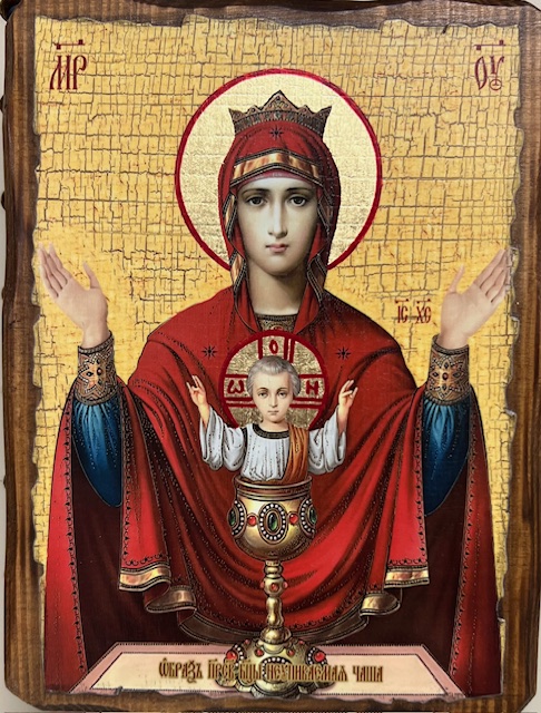 Icon print mounted on a thick wood reinforced with wooden bars. Wall hanging.