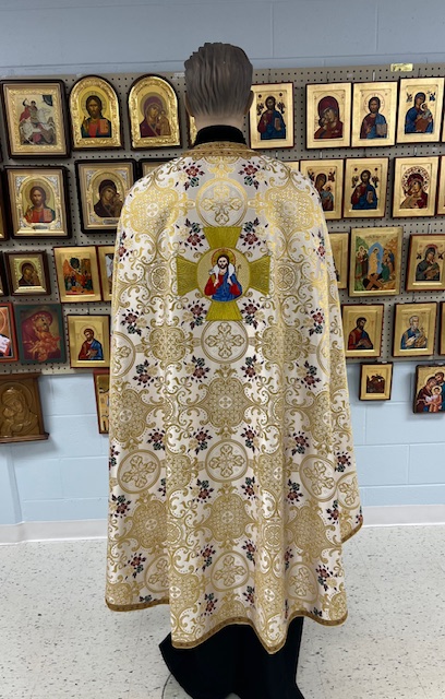 Set of Priestly Vestments: Vestment, epitrachil, belt, cuffs and set of 3 chalice covers.