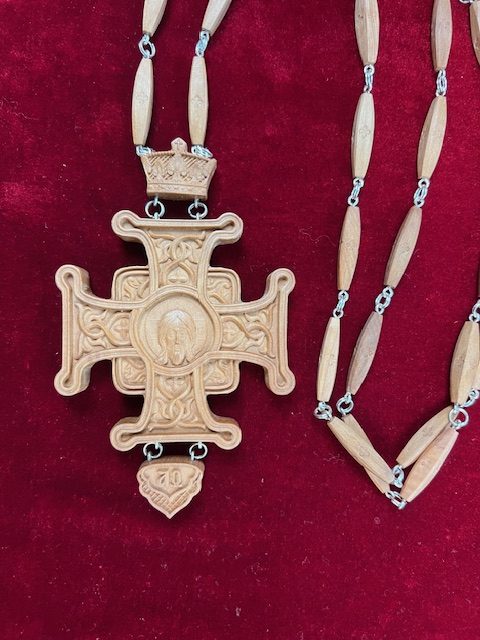 Wooden machine carved pectoral cross.
